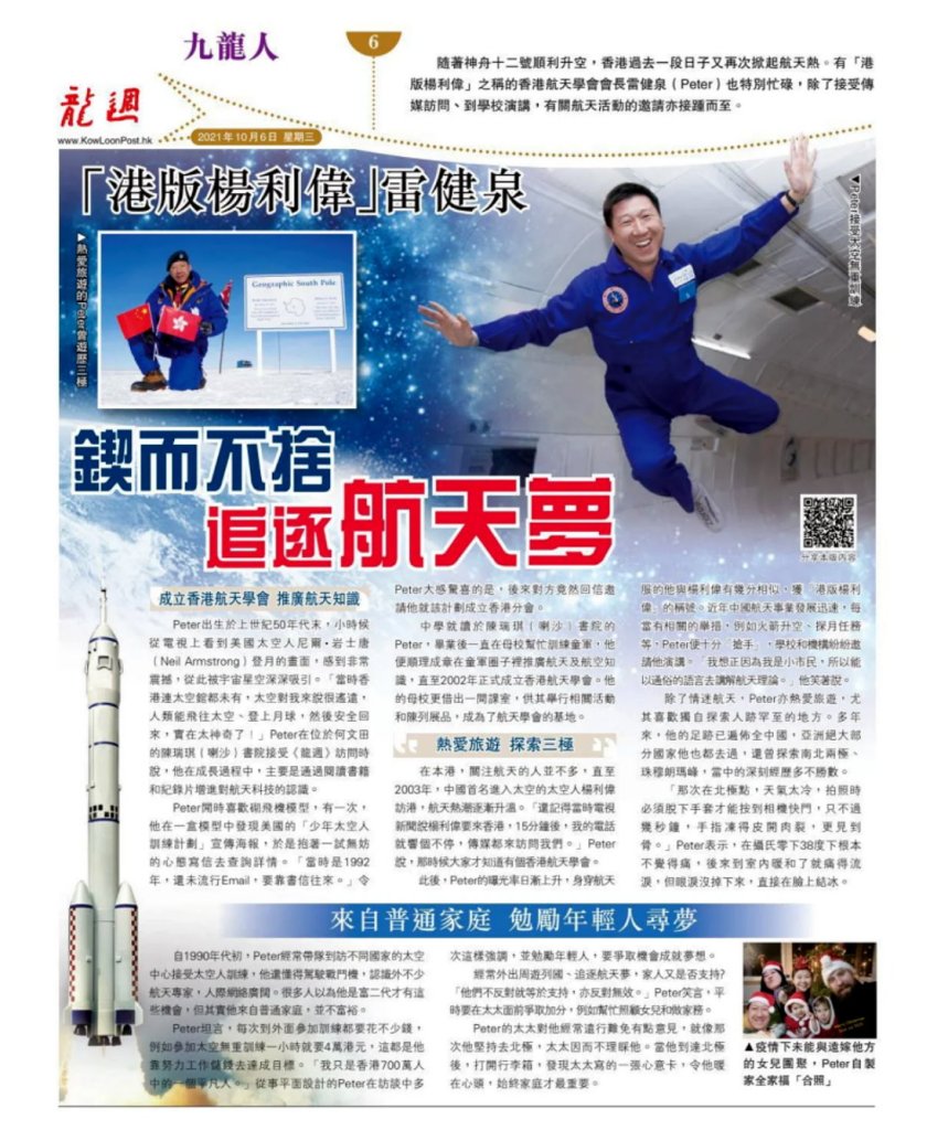 「港版楊利偉」雷健泉 鍥而不捨追逐航天夢
